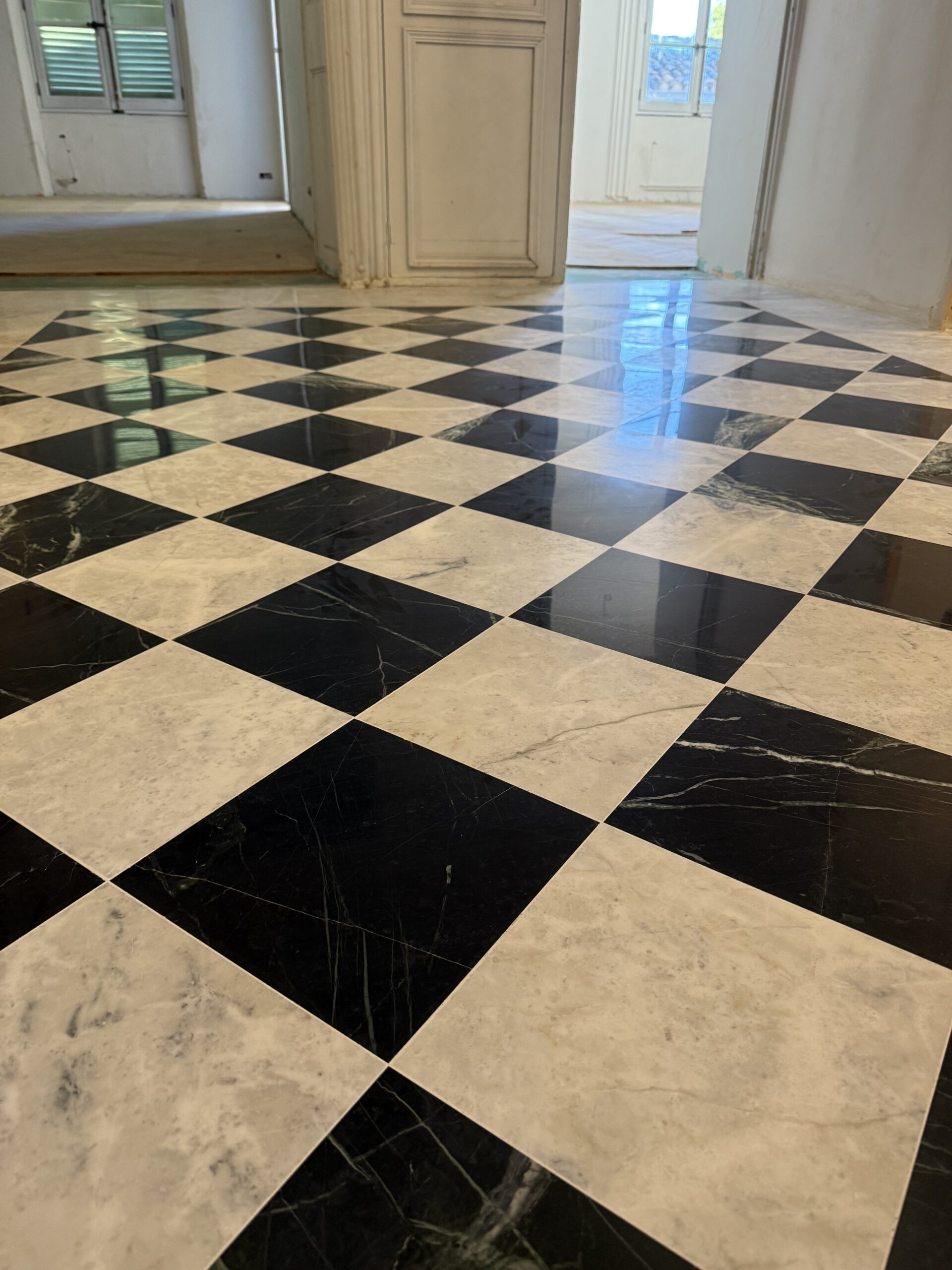 La cristallisation est un procédé naturel pour rendre le marbre brillant. Avant la cristallisation, il faut nettoyer le sol sans cires ni polymères. On peut cristalliser de différentes manières. Cela facilite l'entretien quotidien et diminue l'encrassement. La pierre devient plus résistante. Cependant, la cristallisation ne supprime pas les rayures. Pour un résultat plus durable, il est recommandé de poncer le sol avant de cristalliser. Bien entendu, en fonction de votre projet, il sera possible de lui conserver un aspect mat ou naturel selon vos préférences.